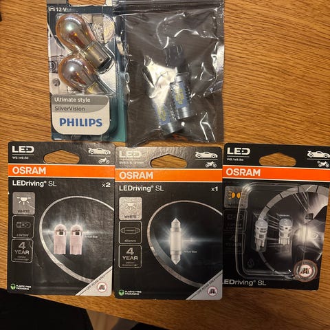 Det skulle være de bedste pære som man kan købe og vil give meget mere nærlys og det er jo godt i den mørke tid og de har kostet 899 kr men jeg sælger dem for 500.