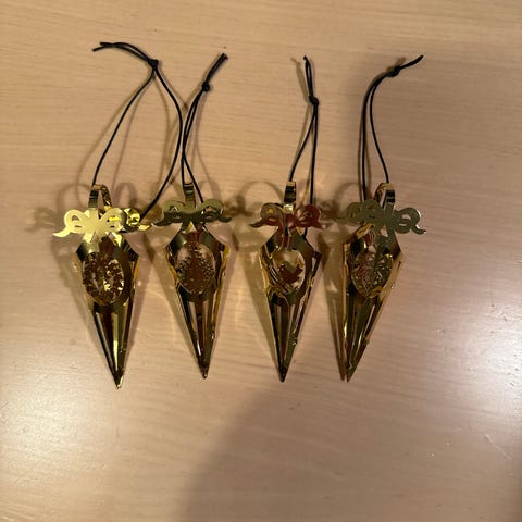 2 kasser a` to stk. julekugler med kælkende børn og sølv glimmer bagside: 60,-