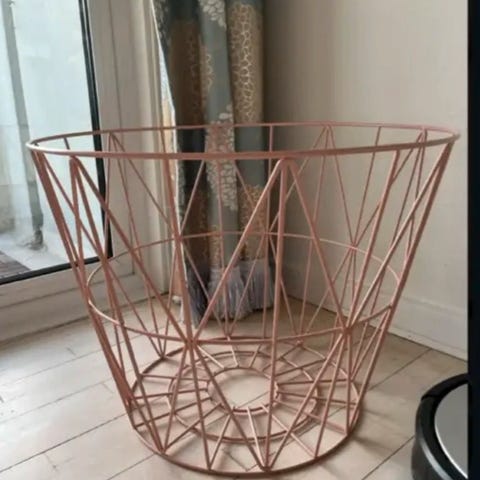 Ferm Living den store kurv med topplade. Pladen trænger til at blive pudset op.