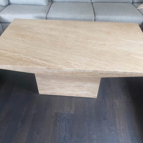 Sofabord, sten, b: 80 l: 140, Ældre stuebord i træ og med sten plade indlagt