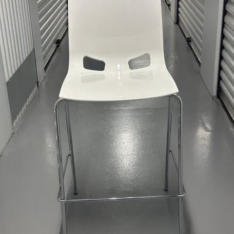 4 Transparente plaststole med sæde og ryglæn i klar plast og ben i metal. Stolen har en moderne, gennemsigtig design og metalstel med tværgående støtteben. Velegnet til brug i hjemmet eller kontormiljøer. 100 kr. / stol.
