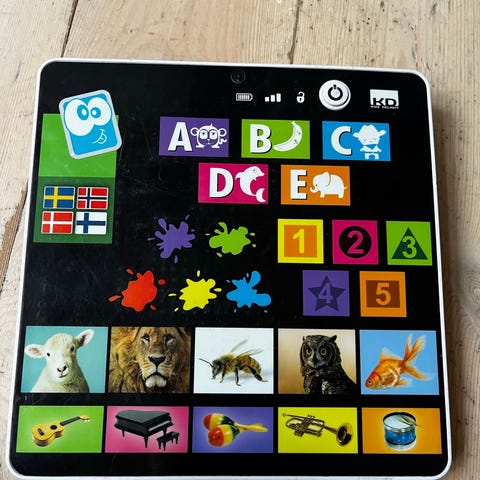 børnelegetøj aktivitetstavle med rumtema. Fremstillet i træ med malede illustrationer af planeter, raketter og astronauter. Designet til at stimulere finmotorik og leg for børn. Farverig og velegnet til børn.