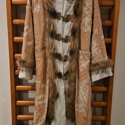 Eksklusiv medi pels frakke fra Munthe. Går ned over hoften. Kræver leder pleje og rens.