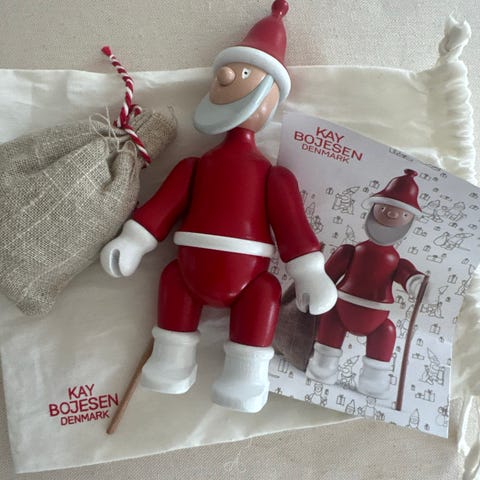 Kay Bojesen Nisse juledekoration til jul. Fremstillet i træ med malede detaljer i rød og hvid. Designet som en traditionel nissefigur med hat, skæg og kost. Velegnet til juleudsmykning i hjemmet.