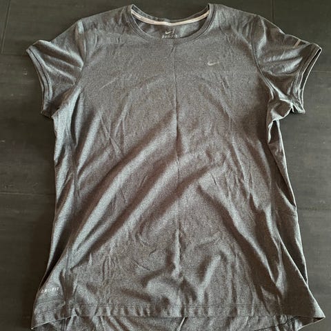 Nike Dri-FIT Fitness Tanktop i størrelse XS til kvinder. Toppen er sort og lavet i svedtransporterende materiale, der er velegnet til fitnessaktiviteter. Aldrig brugt