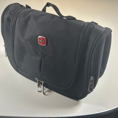 Wenger toilettaske, et rum med 5 lommer og 2 udvendige rum, til ophæng under brug. Som ny.