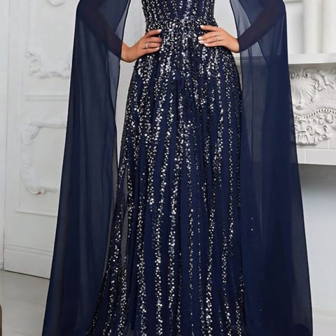 Meget fin kjole i marine med hvide prikker og palliativ effekt i mellem