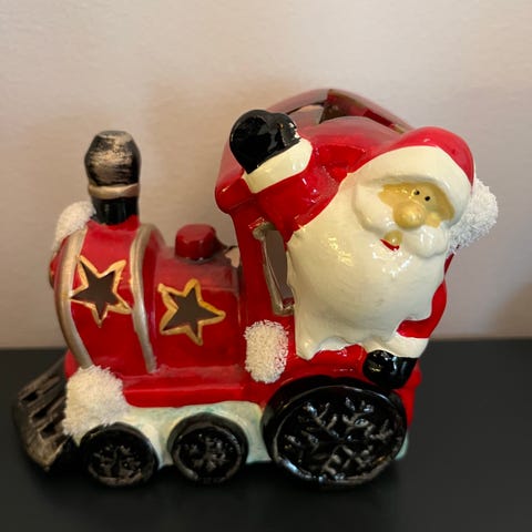 Stort flot fint lysnet med julemand i futtog