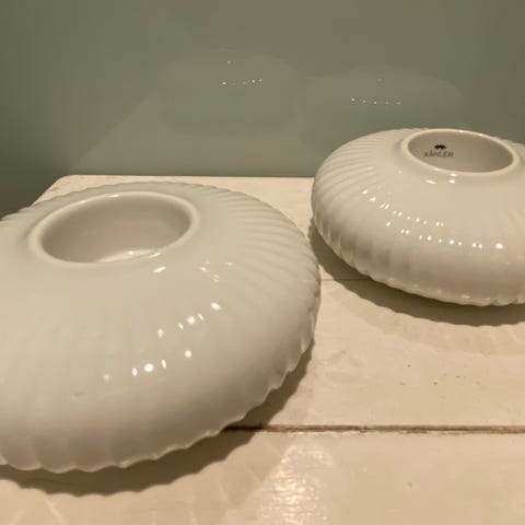 Fyrfadsstace højde 9 cm og vase højde 11,5 cm.