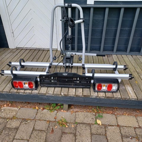 Cykelstativ til 3 stk. cykler. Nem montering på anhængertræk, medfølger værktøj til montering og ladybike adapter.