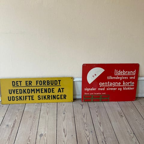 Skiltet har den helt rigtige slidte charme, som kun ægte vintage får med tiden – farverne står stadig flot, og metallet har den rette patinerede overflade.