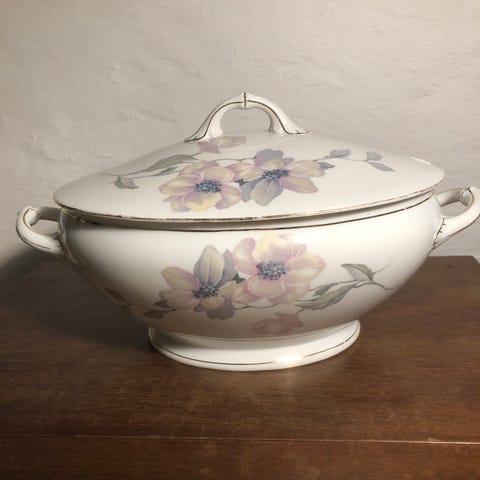 Flot gammel terrin i fin stand, højde inkl låg 17 cm - diam 23 cm.