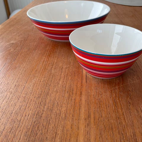 Iittala Keramik Skål og Blå Hvid Keramisk Ske