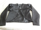 Jakke, kort, sort silkeagtig jakke, mrk. Pretty Sille, str. 116, vil være flot som pynt til en fin kjole, Kr. 25,00.