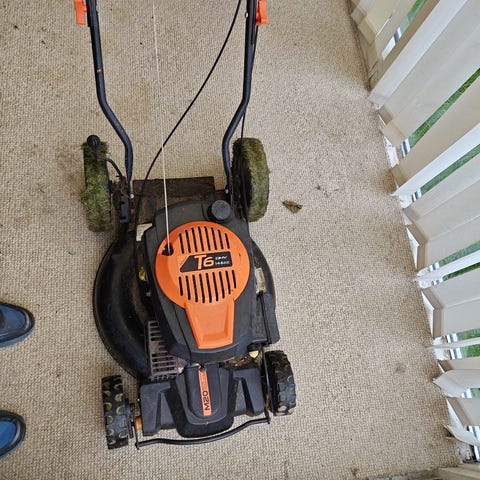 Stiga Combi 47 SQ er en benzindrevet plæneklipper med en klippebredde på 47 cm. Den har en gul farve og er designet til effektiv græsslåning. Modellen er udstyret med en kraftig motor og robuste hjul, som sikrer god fremkommelighed på forskellige terræner.
