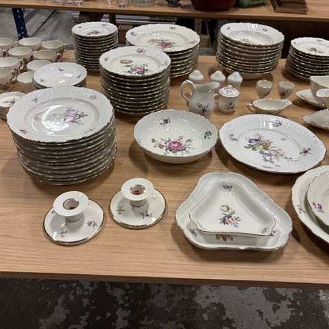 Royal Copenhagen dekorative fliser lavet af porcelæn med malede motiver. Fliserne viser henholdsvis en rød træport til Dyrehaven samt Eremitageslottet.Velegnet til vægophæng som dekorative elementer.