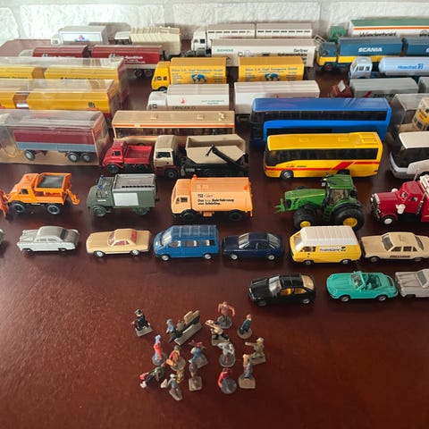 Samling bestående af forskellige modelbiler og lastbiler i 1/87.de er i deres originale kasser de fleste af dem ,gode til toglandskab ,pris pr bil 40 kr afhentes i 6771 eller sendes mod betaling af porto ,sender dog kundes køb af mindst tre biler .