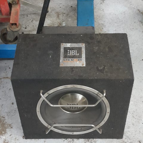 Phoenix Gold forstærker med tilhørende MDS subwoofer. Forstærkeren har flere tilslutningsmuligheder inklusive RCA-indgange og justeringsknapper. Subwooferen er monteret i et kabinet med mål 36x36 cm. Produktet er velegnet til lydsystemer og musikafspilning.