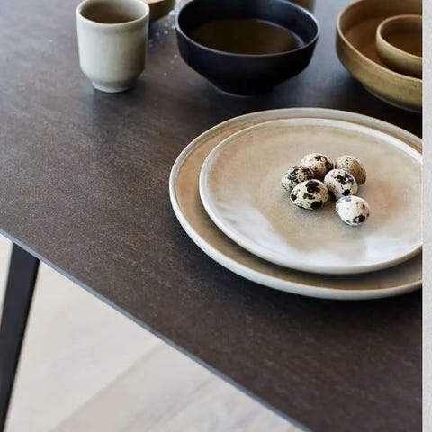 Stentøjet er behandlet med en reaktiv glasering, som giver hvert produkt sin egen unikke karakter og farve variation.
