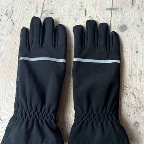H&M børnehandsker i blå farve, størrelse 110, designet til unisex børn. Handskerne har elastisk håndled for bedre pasform og komfort.