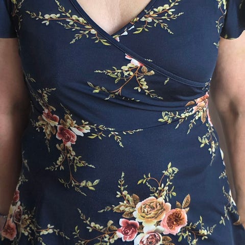 Happy Holly Top i størrelse 40 til kvinder. Toppen er blå med et paisley mønster og har en justerbar rynkning foran. Materialet består af 95% polyester og 5% elastan, hvilket giver en strækbar og behagelig pasform. Velegnet til hverdagsbrug og kan kombineres med forskellige outfits. Ikkeryger hjem