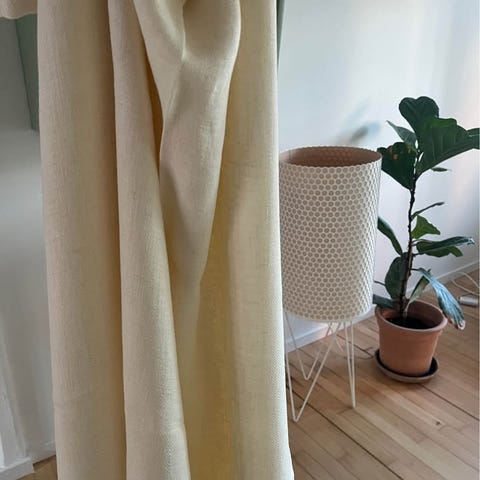 Grå hørgardiner i god stand, ikke rigtig spor af brug.