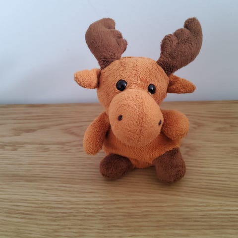 Sjov elg med grønt gevir fra dyre- og røgfrit hjem.