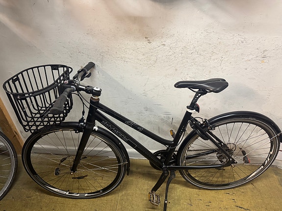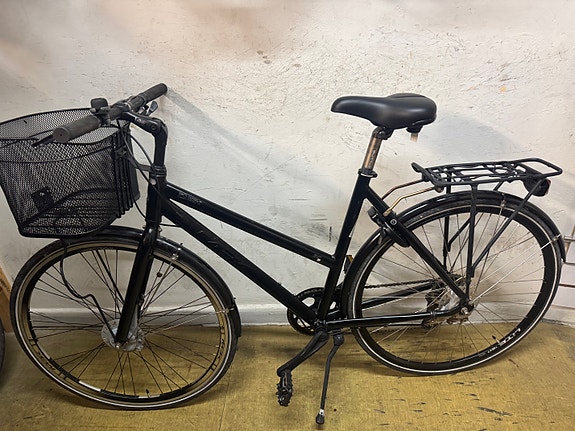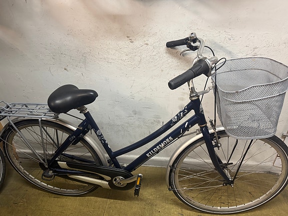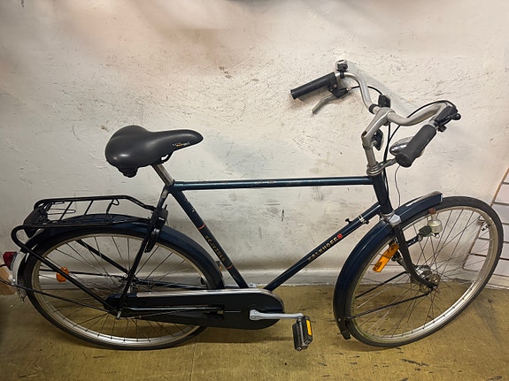 Cyklen har lige fået service og blev justeret og ordnet grundigt og i den forbindelse har den fået en ny sadel, en ny rustfri kæde, 2 x bremseklodser og et sæt magnet lygte.