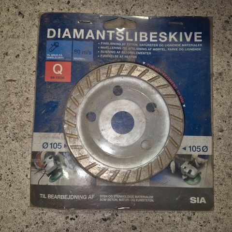 Biltema Diamantslipeskive med en diameter på 125 mm. Egnet til sliping med diamantmateriale, designet for bruk på ulike overflater. Produktet følger standard EN 13236. Ny pris 300 6 stk haves 150 pr stk