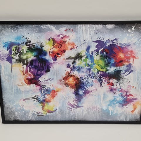 Denne ualmindelige smukke fortolkning af alle verdens lande i akryl på lærred mangler en ny væg det måler 180×100 og er i perfekt stand ingen pletter eller revner anstændige bud modtages