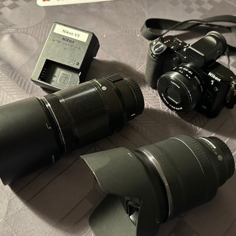 Nikon 1 J5, brugt meget sparsomt, omkring 1000 billeder. Ekstra udstyr: ektra Nikon 10-30 mm linse, Nikon 30-110 mm linse, ekstern oplader til 2 batterier, ekstra batteri, helt ny Lowpro taske. Sælges kun samlet.