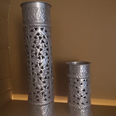 To smukke grønne lysestager til fyrfadslys. Fejler intet. Sælges samlet