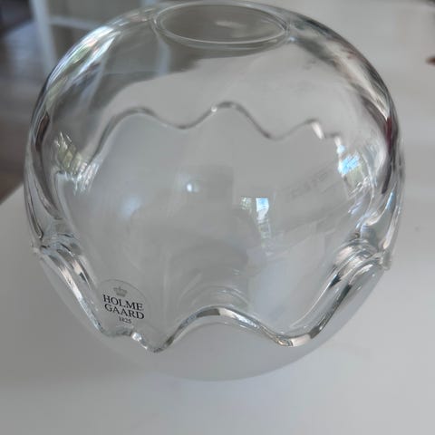 Holmegaard Bonbonnier - mixet glas - klar og frostet glas. Har aldrig været i brug. Ved klistermærket er der et par små bobler i glasset.