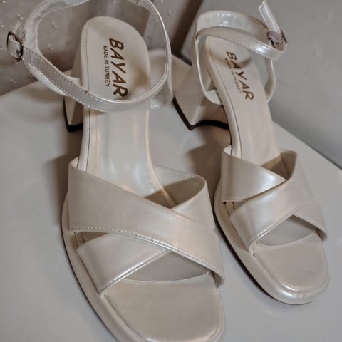Sandaler med lille blokhæl og remme, str. 40, brugt en gang, brugsspor kan forekomme.