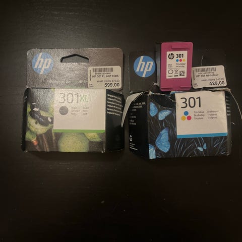 Blæk passer til HP printere der bruger 301 kasetter, helt nyt både sort/hvid og farve.