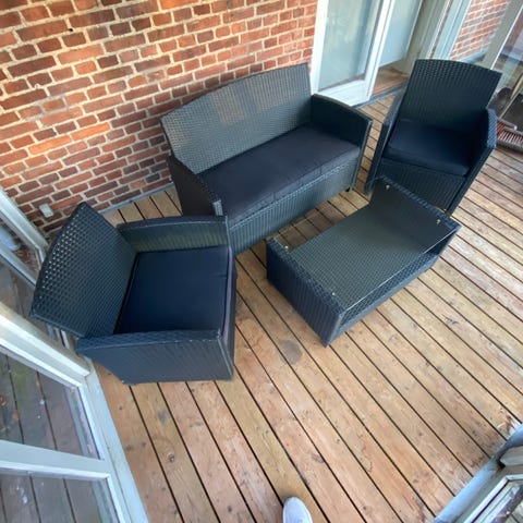 Rattan Havemøbelsæt med polstrede puder og glasbord