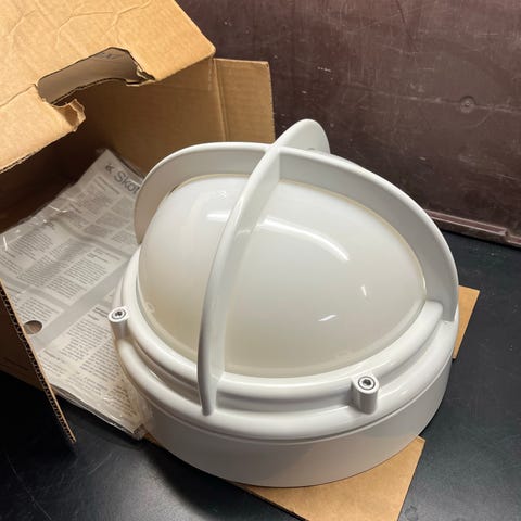 Lamperne er ombygget til 230v, E27 fatning, alm Led lyskilde passer i, ø30cm. Lyskilde medfølger. Der er 6 stk i alt.
