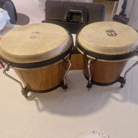 Bongo Trommer Gamle men virker Højde tromme diameter 17cm 14,5cm 17,5cm