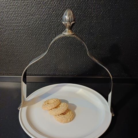 Nymalet tallerkenholder. Står som ny med farven "nostalgic blue" fra Flugger Farver