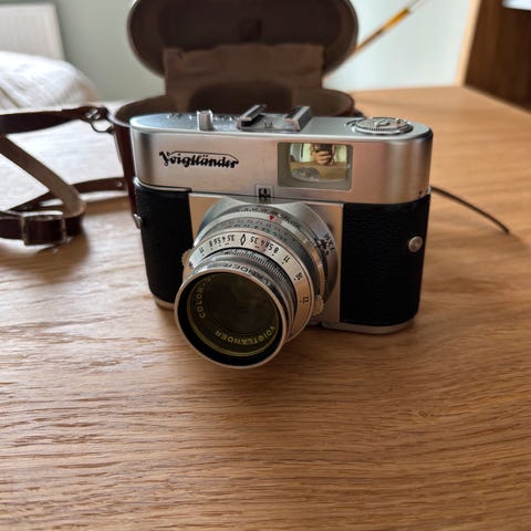 Med original (slidt) æske, manual, film, adapter til 35mm - pæn brugt stand.