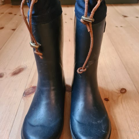 Str. 37 Mørkeblå med Blomstermønster. Justerbar snøre