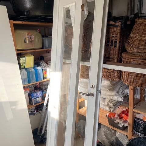 Fin dobbelt Svedoor med glas, ydre karm-mål 209H x 131,5B.