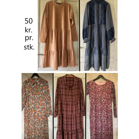 Kjoler, 5 stk. Priser fra 50kr, samlet 350kr.