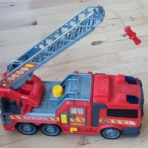 Med brandmand Sam figur. Brandbilen er ikke brugt meget og er i god stand. Dog virker lyden ikke, men det tror jeg kun er rart :)