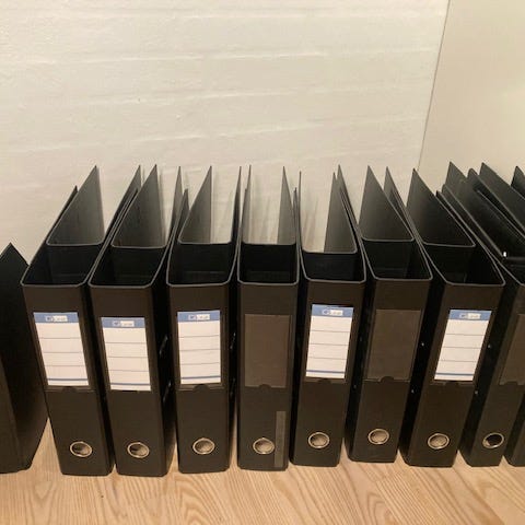 Brevordnere/ringbind, i flere forskellige farver og størrelser - nye og også ganske lidt brugte. NB! Sælger også plastlommer. Sendes gerne, send info. Priser fra 10 - 15 kr. pr. stk.