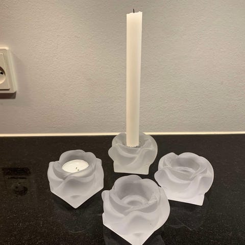 Sælger hende her, en fin sort metallisk dame med bast snører som tøj. Hun holder en grydelignende ting til fyrfadslys som kan tages af.