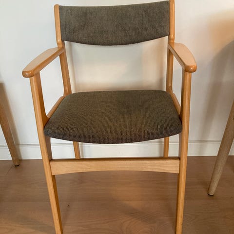Rigtig god stol i bøg, org. stof uden fejl, kun alm. brugsspor på træet.