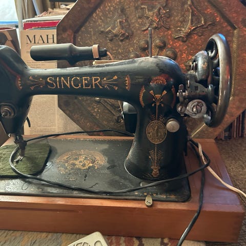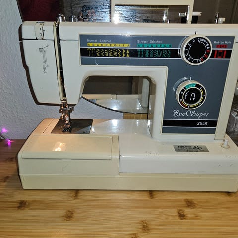 Simpel symaskine som ifølge min kæreste virker perfekt. Der findes angiveligt flere modeller med dette navn, eller måske flere årgange. Denne har et lidt firseragtigt look, men der ses da en salgslabel med website, så helt gammel kan den ikke være.