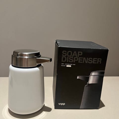 Sort sæbedispenser fra Vipp til badeværelse eller køkken. Fast pris og sender ikke.