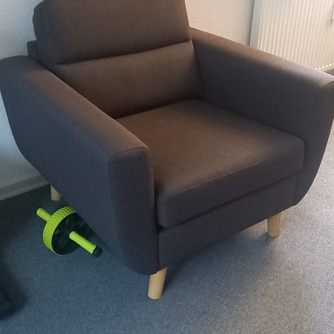 Lækker lænestol med puff fra MyHome. Den er i rigtig pæn stand. Puffen er med opbevaring.